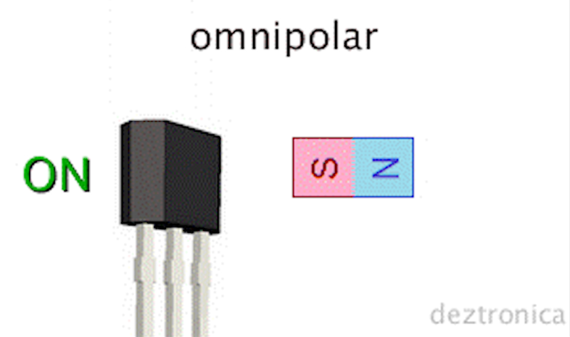 С герконами почти такая же проблема, из всех возможных вариантов я остановился на датчиках Холла. Это небольшое твердотельное устройство, которое реагирует на магнитное поле. Он имеет габариты 4×4 мм, от него отходят всего 3 провода плюс ни одной движущейся детали. Поскольку во всем агрегате этих датчиков у меня оказалось в районе 96 штук, то это оказалось очень удачным решением. Естественно этот датчик ставится на все НЕПОДВИЖНЫЕ части, а на все подвижные части ставится магнит. Неодимовый магнит диаметром 4 мм. Как раз под размер самого датчика.