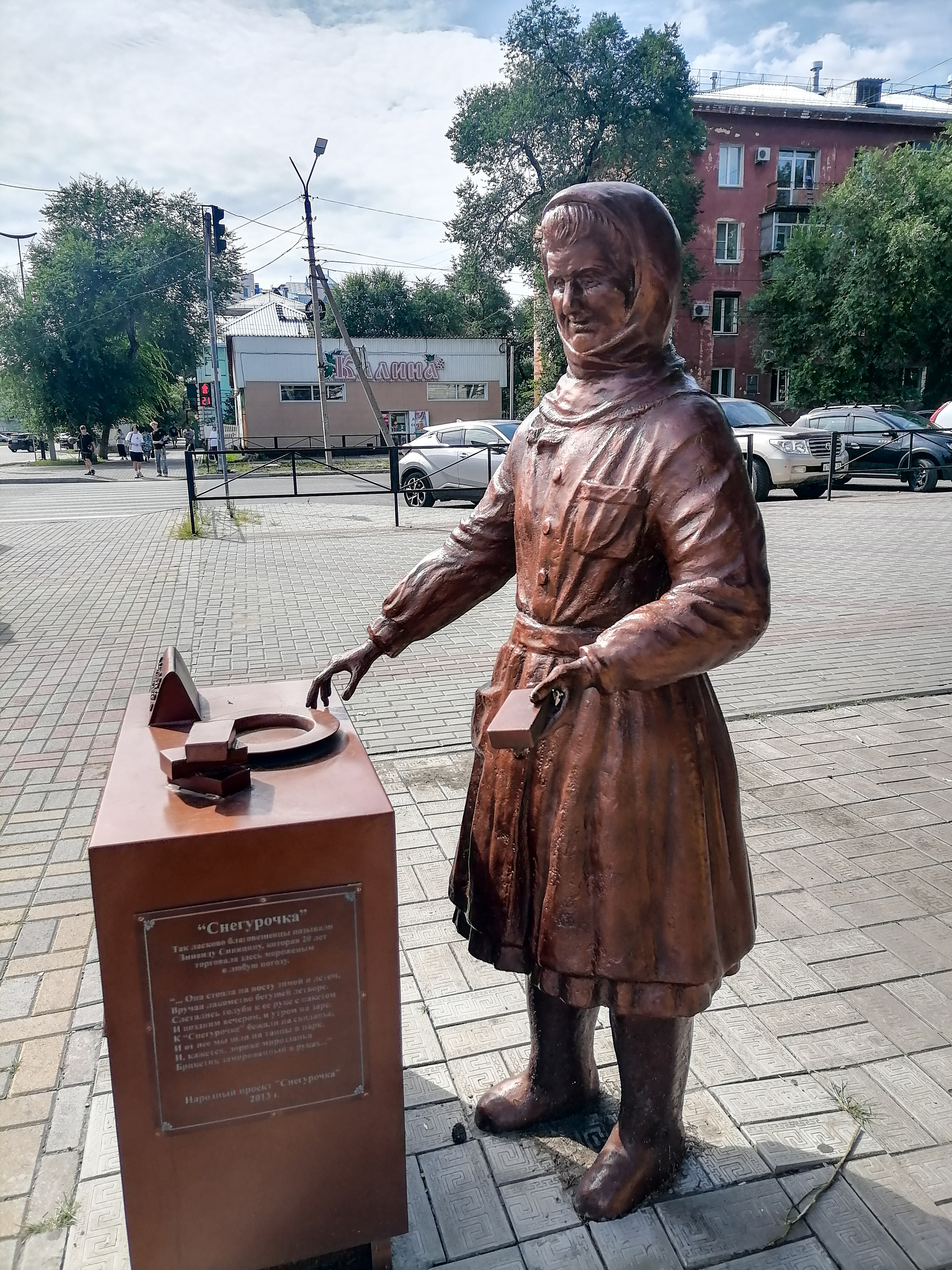 Вот ещё интересный памятник, найденный нами на улицах Благовещенска. На памятнике надпись: "Снегурочка" - так ласково благовещенцы называли Зинаиду Синицину, которая 20 лет торговала здесь мороженым в любую погоду.