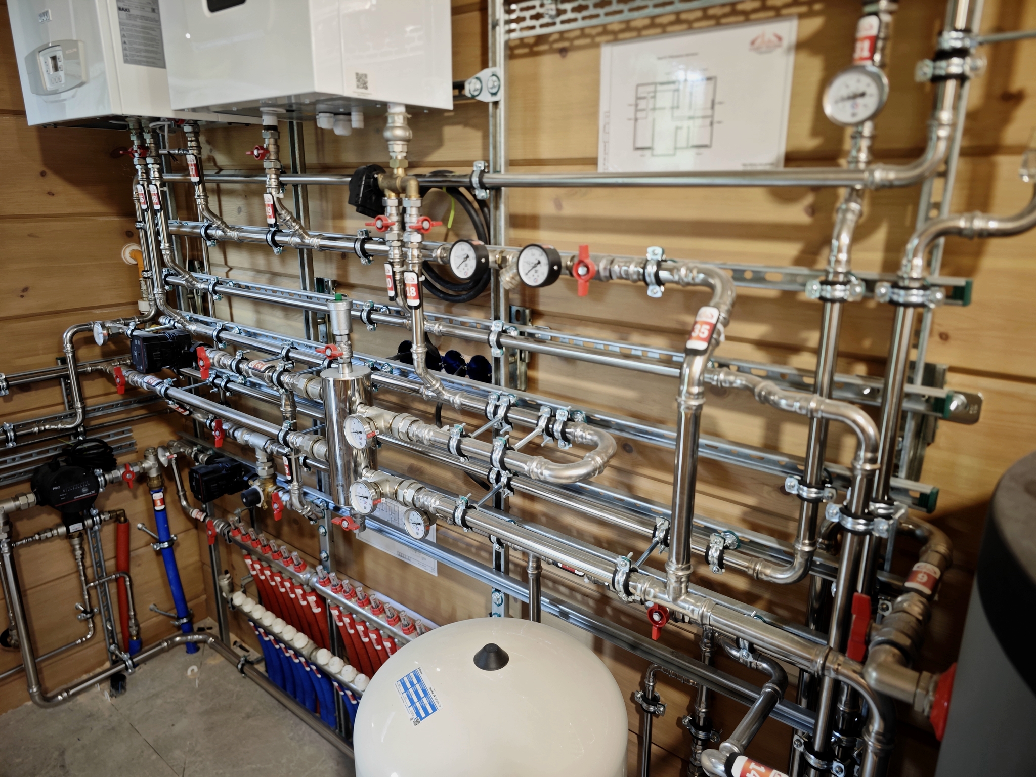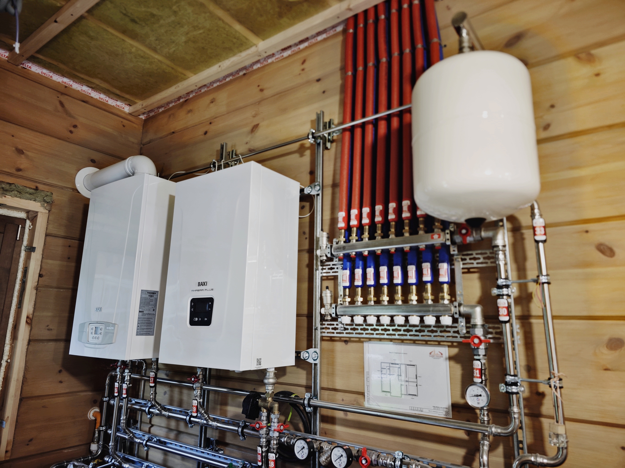В двух этажном доме площадью 280кв.м. выполнен монтаж котельной.
