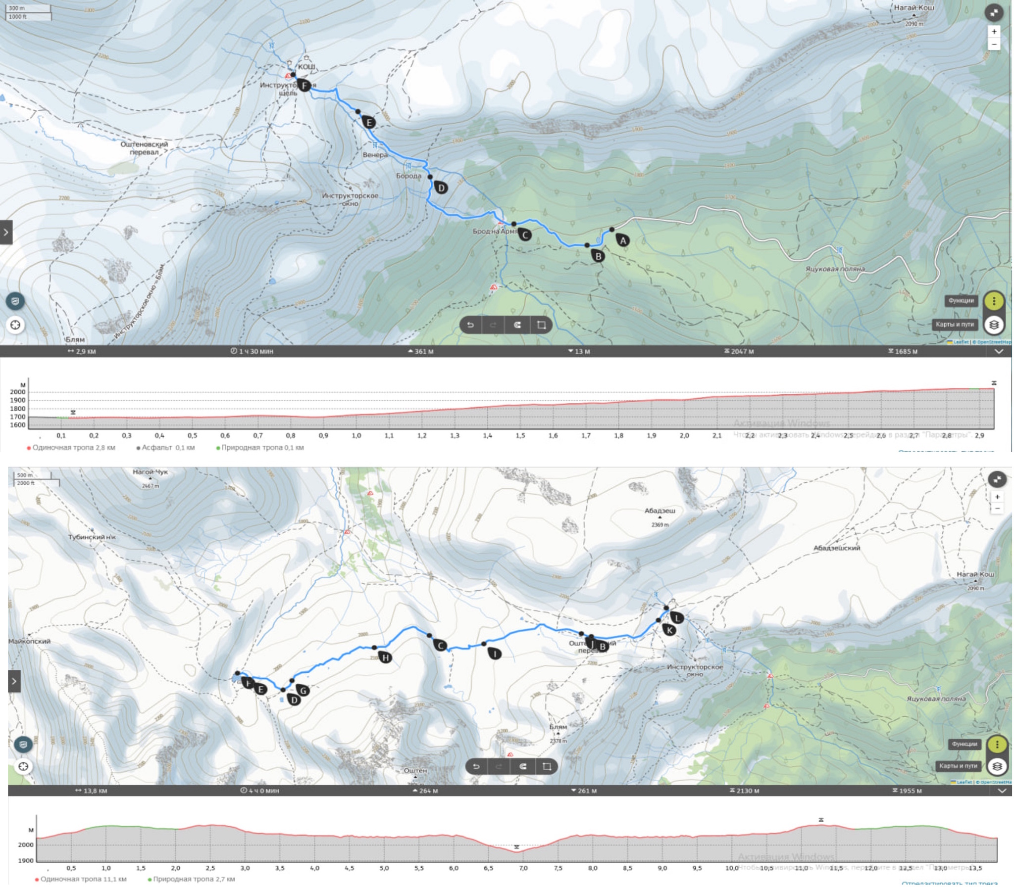 День 1. Яворова поляна → Инструкторская щель + Псенодах (17км)