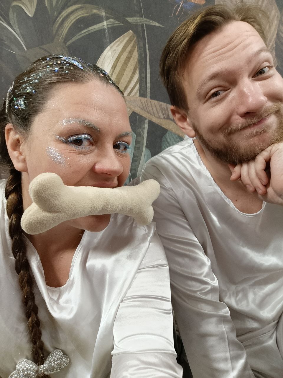 После последнего выхода за день Дедушка Мороз переодевается в серьезного человека и едет решать серьезные дела директора серьезного театра. Я или надеваю нос и еду решать несерьезные клоунские дела. Обычно единорогом. Чтобы как-то оправдать блестки. Ну или становлюсь СнеДурочкой. Тут я, например, играю бананами на пианино. Потому что могу.