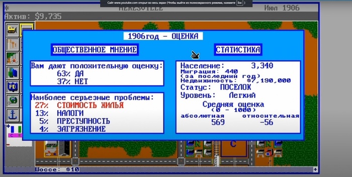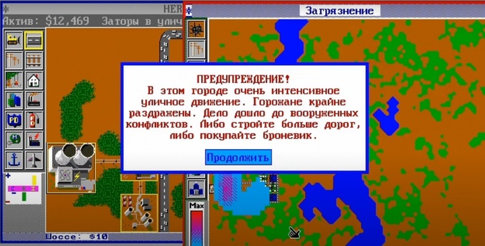 А, ну и пробки, да. Куда ж без них. Было офигенно смотреть, как на шоссе двигались машинки. И мы бились с пробками кардинальным методом — перекладкой асфальта. Видишь, где машины встали — строишь дорогу поверх, и ближайшие 2 месяца там не было пробок. Даже при отсутствии мышки, у меня получалось на изи поддерживать нормальную транспортную ситуацию в большом городе без кардинальных изменений инфраструктуры.