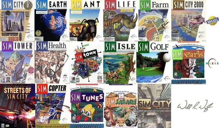 SimEarth, SimAnt, SimLife, SimCity 2000, SimCopter, а также симуляторы ферм, гольфа и прочей фигни, про которые сейчас помнят полтора олдфага. Хитами, конечно, они не стали, но в некоторые из них можно скоротать вечерок-другой до сих пор.