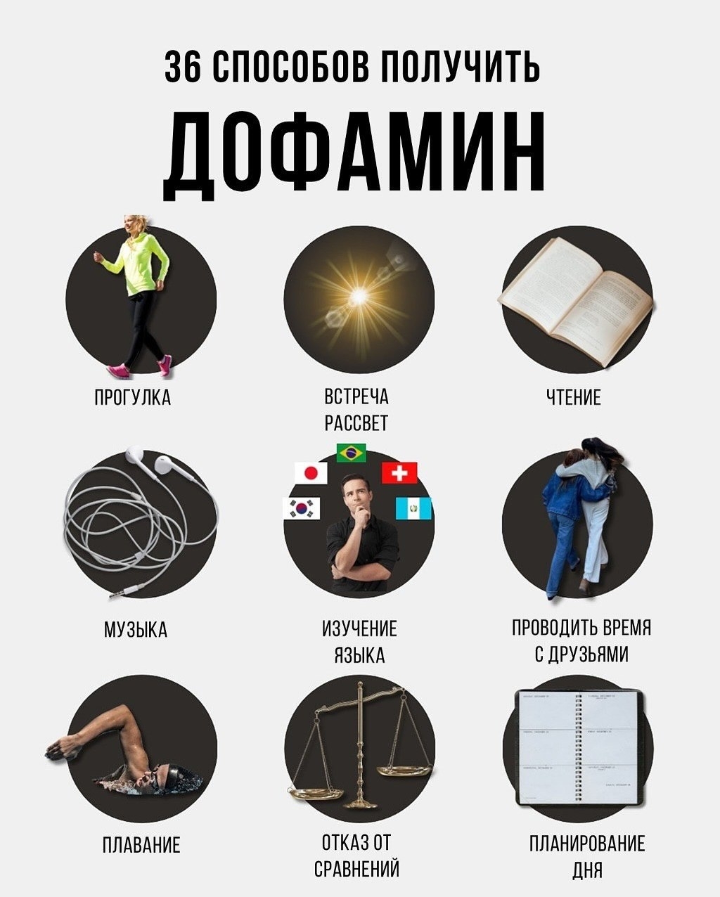 Он отвечает за чувство удовольствия, мотивацию и обучение, формируя «систему вознаграждения». Выработка дофамина повышается при физической активности, отдыхе и приятных переживаниях.