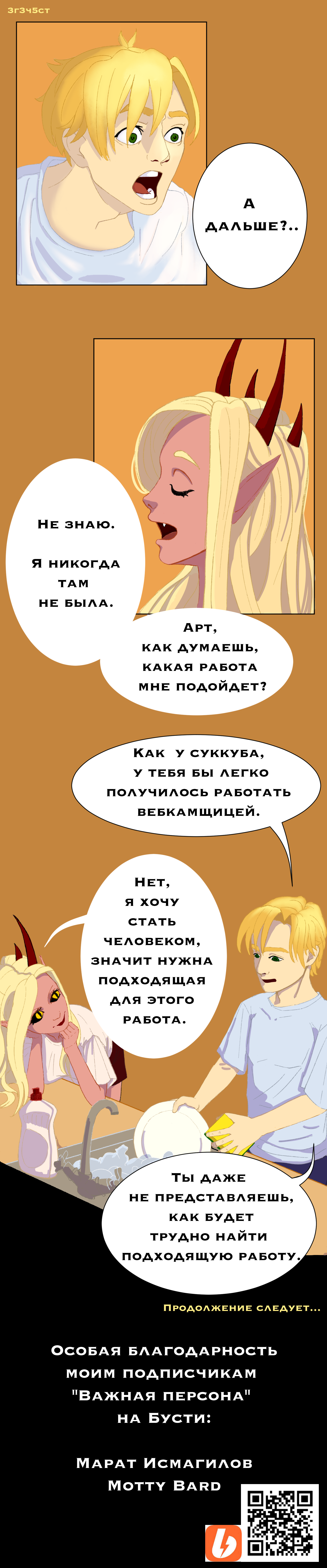 Дальше суккуб Пира будет искать работу, а человек Арт будет ей в этом помогать. Можешь написать, как думаешь, какая работа ей подошла бы?)