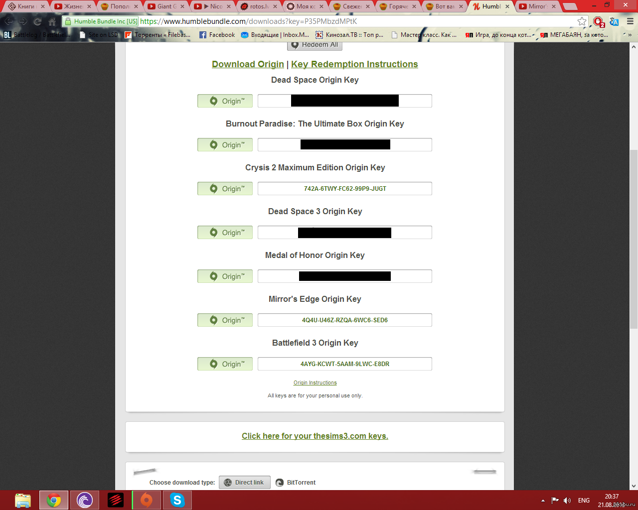 JustCrazyGuy 3 ключа ORIGIN 12 лет назад Извините, сам много забрал, но может кому на Крусис 2 и Батфилд 3 повезёт. Ключи Халява Халявные ключи Battlefield 3 Crysis 2