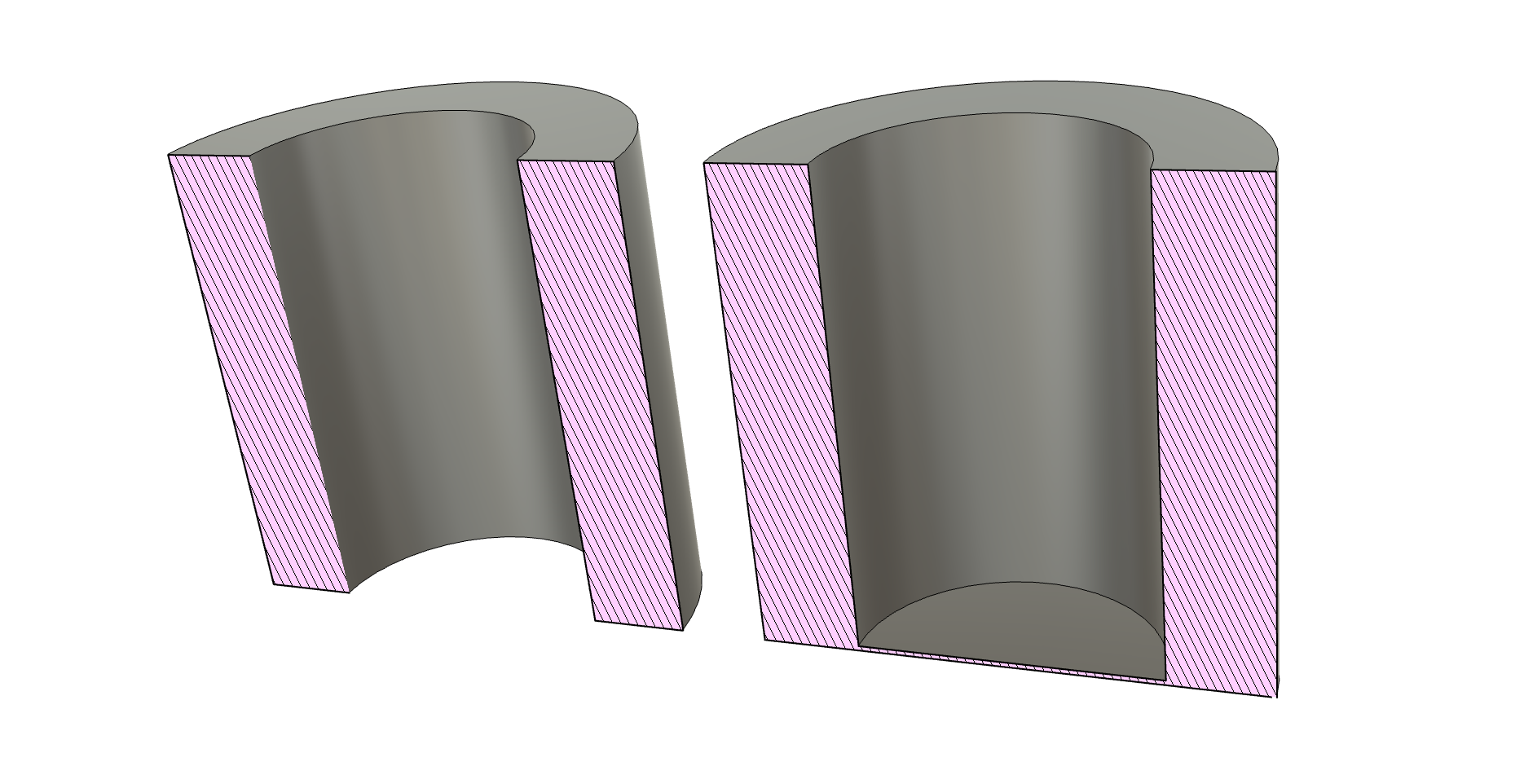 Отверстие в днище детали можно увести в конус с той же целью. Делаем Q (Press Pull) во Fusion 360 на 15 мм (радиус отверстия), делаем Chamfer на 15 мм.