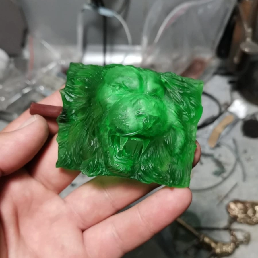 Далее отправили на печать. Всё стандартно, принтер Anycubic Photon, полимер от них же, зелёный.