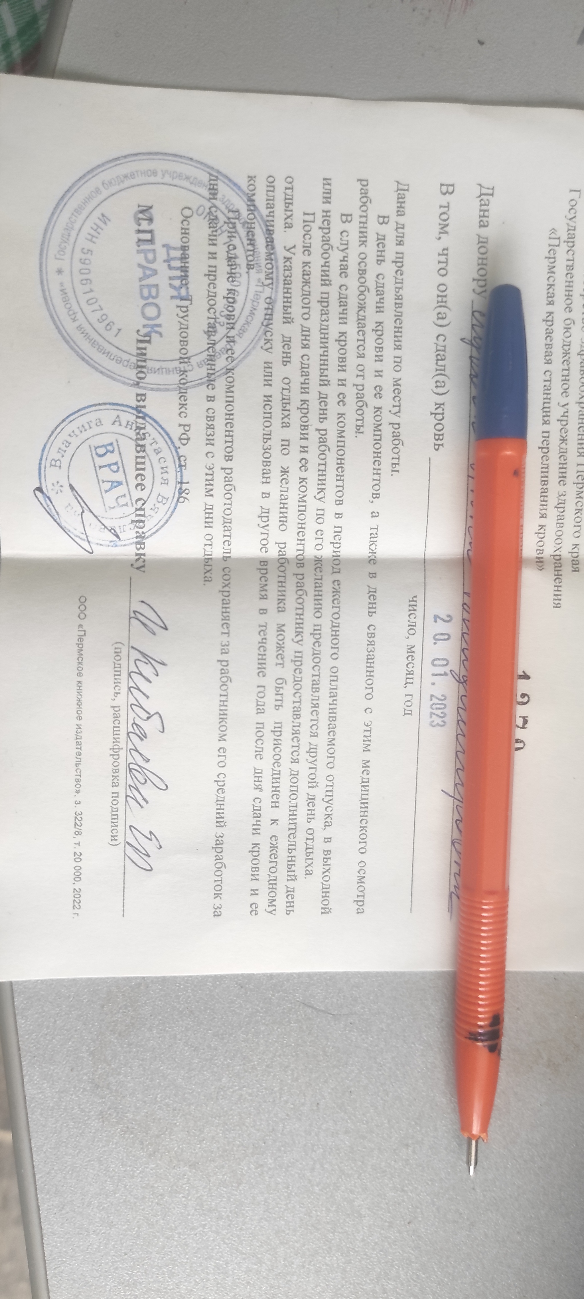 41 донорская справка…