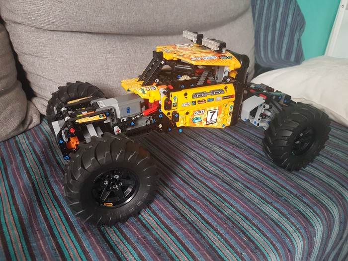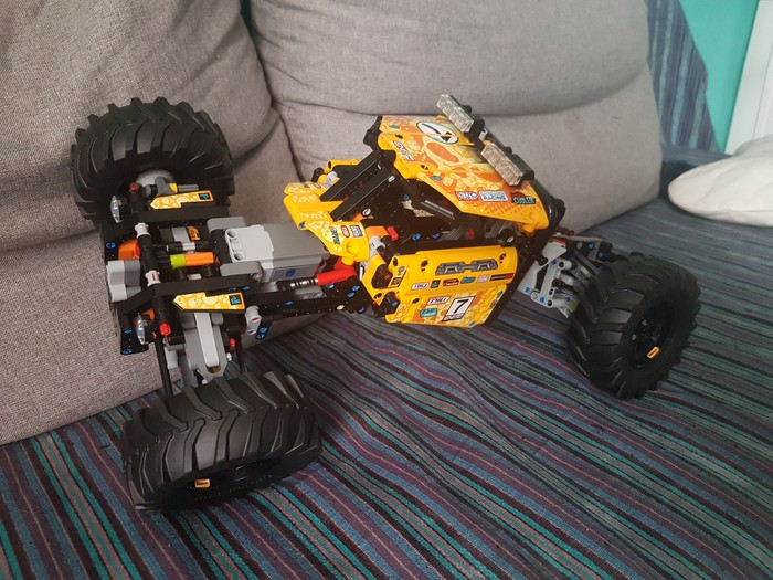 Понравилась идея с артикуляцией осей, при этом кабина находится всегда на равном угле от обоих осей. Инструкция стоит 15€, поэтому за ночь, глядя на фото и видео собрал так) едет очень даже уверенно, советую.