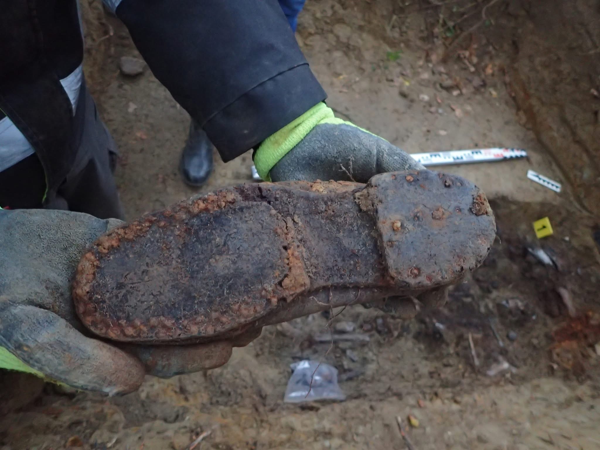 «Самолёт сбит бандой над лесом; пилот Гусев П. И. получил смертельное ранение в голову пулей 21 марта 1945 года».