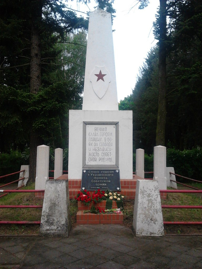 9 мая у меня день рождения. В связи с этим, мой муж-поляк каждый год в мой день рождения вынужден завтракать под трансляцию парада с Красной Площади и весь день слушать мои рассказы о моих воевавших дедах. Так было и в этом году. И я посетовала, что увы, в округе нет ни одного кладбища или памятника советским войнам, чтобы почтить их память.