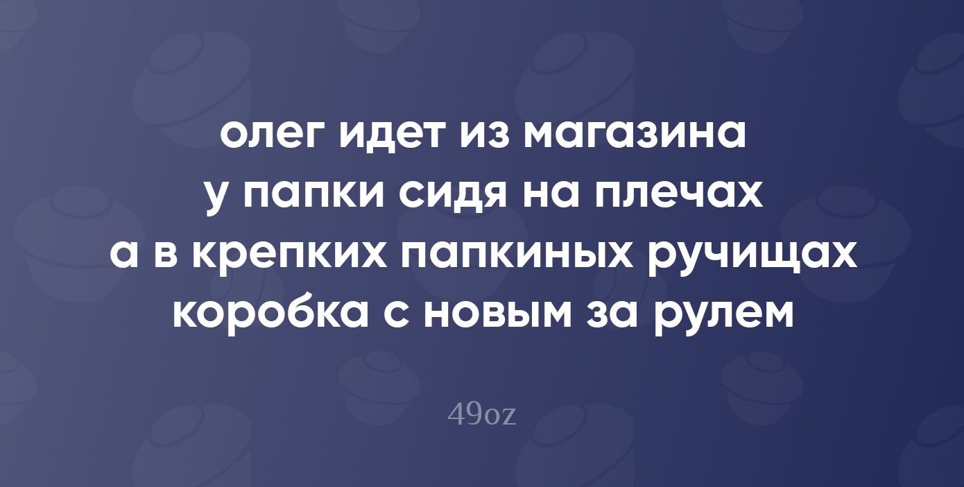 Изредка наблюдения за жизнью я формирую в "пирожки" (малая стихотворная форма, написанная белым четырёхстопным ямбом, без прописных букв и знаков препинания). Периодически буду делиться напеченным! P.S. Вечная память Владиславу Кунгурову, отцу пирожков. F!