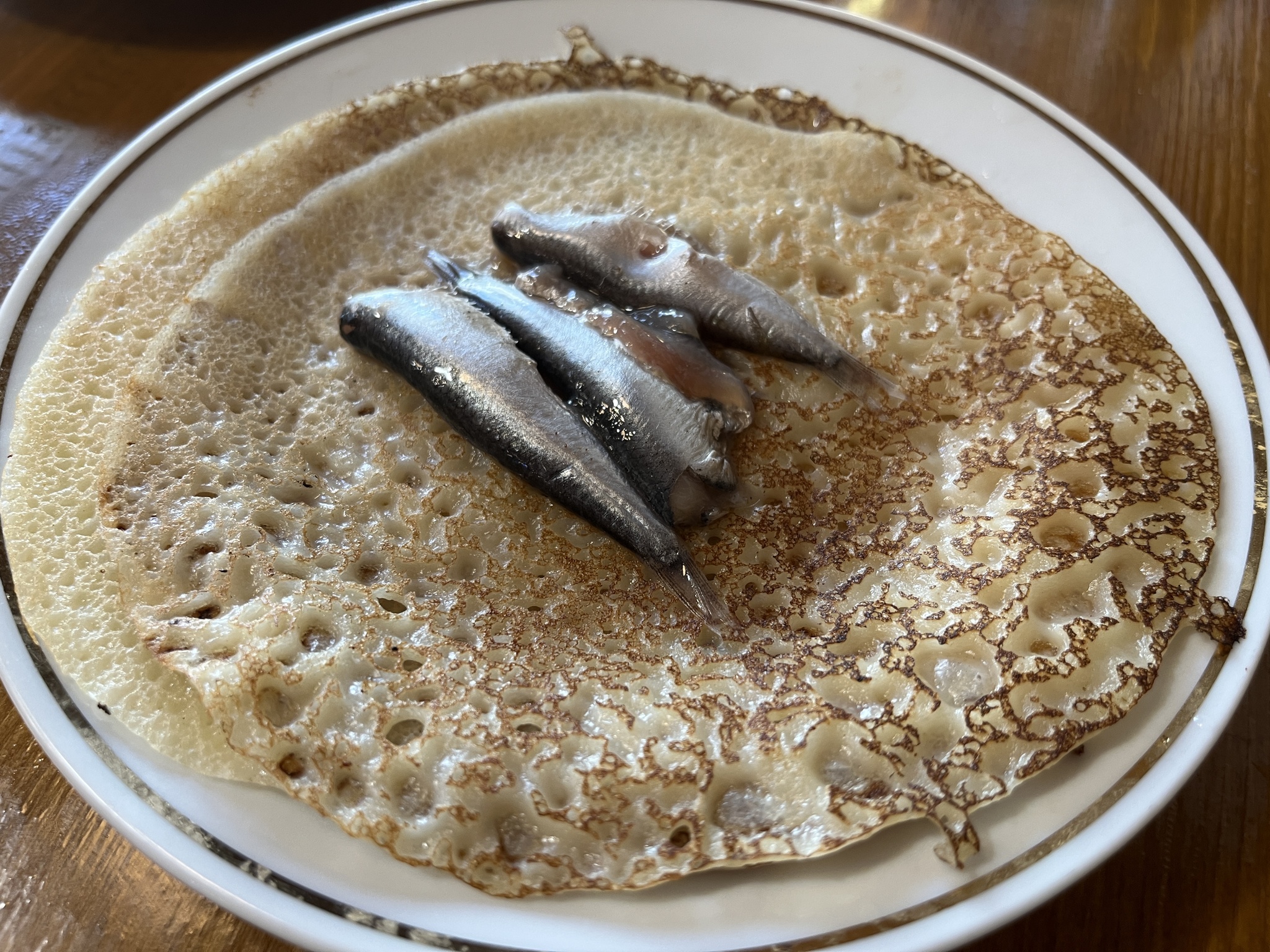 Впрочем, лучше взять что-нибудь тематическое – например, блины с килькой.
