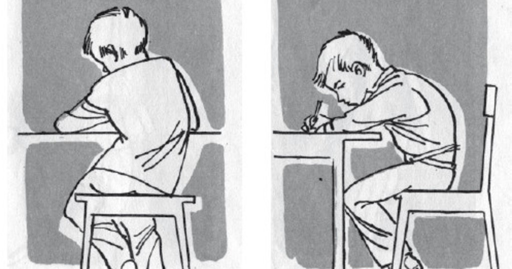 А дети учатся писать и читать на плоской поверхности. Из-за чего ем приходится вытягивать шею и наклонять голову, чтобы увидеть текст прямо, а не в перспективе. Врачи настоятельно рекомендуют заниматься на поверхности под наклоном 17° и больше, чтобы сохранить зрение.