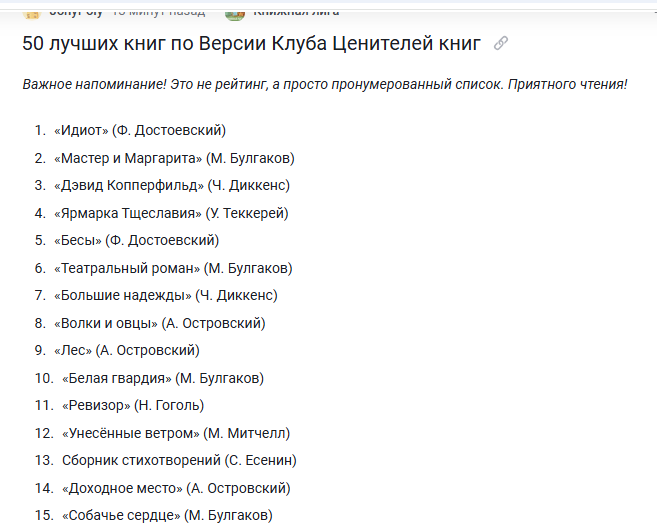 Важное напоминание! Это не рейтинг, а просто пронумерованный список. Приятного чтения!