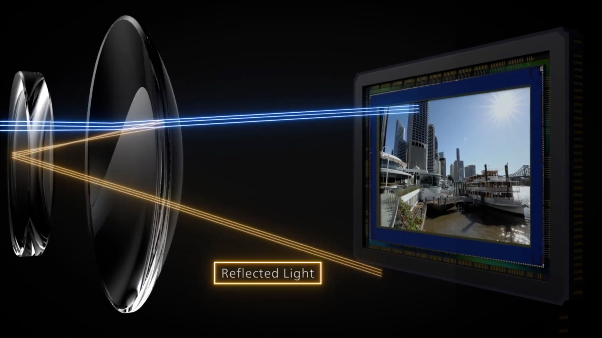 В реальности же всё происходит так: до матрицы через объектив доходит далеко не весь свет. Часть оседает на грязной или не очень хорошо просветлённой линзе, часть потерялась, пока проходила через накрученную инженерами не самую простую оптическую схему, ещё чуть-чуть рассеялось от переотражений внутри объектива.