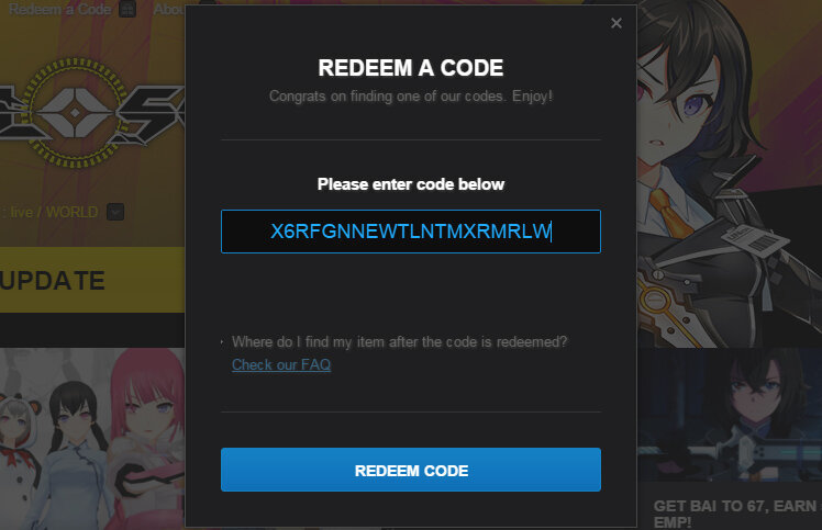 Теперь здесь залогиньтесь в аккаунт, выберите персонажа, введите код и нажмите «redeem coupon code».