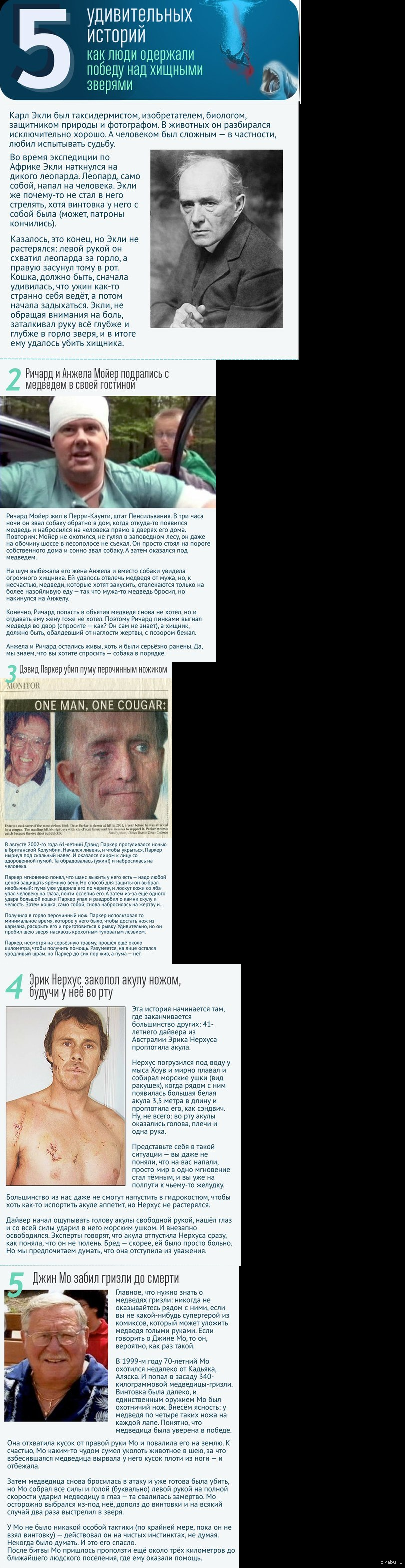 Saligia 11 лет назад 5 удивительных историй как люди одержали победу над дикими зверями Истории из жизни Длиннопост