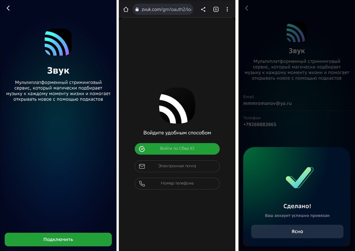 Подключите к своему аккаунту сервис «Звук» (авторизоваться в нем можно с помощью Сбер ID).