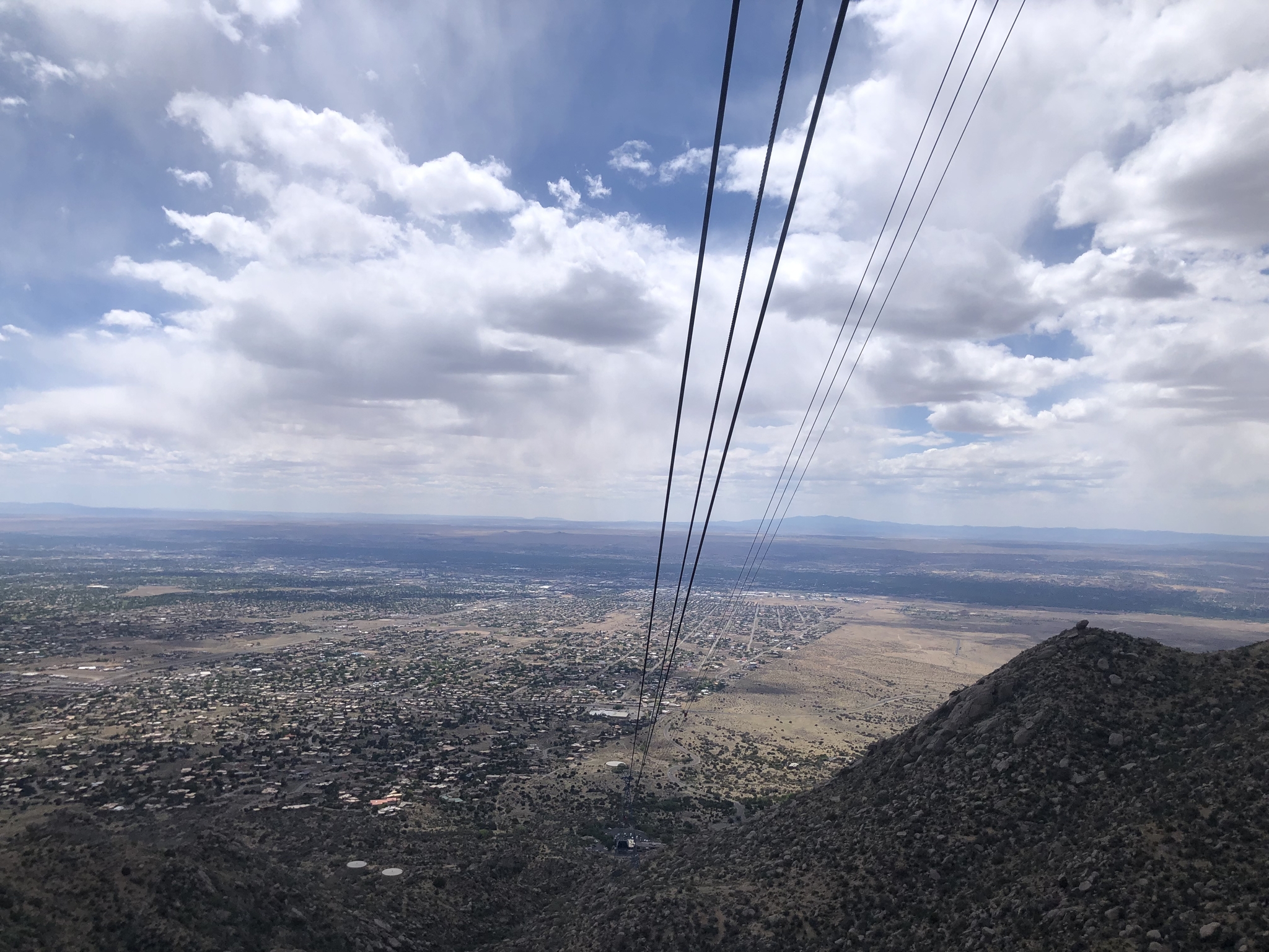 У нас тоже река есть, Рио Гранде. Гранде по испански Большая. Но на самом деле она просто длинная, а широкой становится только ниже по течению в Техасе. Ещё у нас есть гора. Красивая. Называется Сандия Пик. С подножия до вершины ходит воздушный трамвайчик для развлечения публики. Виды на город с Сандии потрясающие. На этой фотке на горизонте виден нам самый большой вулкан - Гора Тэйлор. Комары у нас тоже есть))