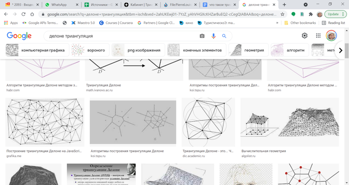 Триангуляция, как следует из названия, связана с треугольниками, а точнее - их углами (и одной стороной). В геодезии этот метод определения расстояний и/или координат использовался как основной вплоть до конца XX века. Так что, если вбить это слово в поисковик, то мы увидим что-то такое: