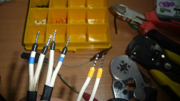 Нам понадобятся наконечники НШВИ, вот так будет выглядить обжатый ими провод: