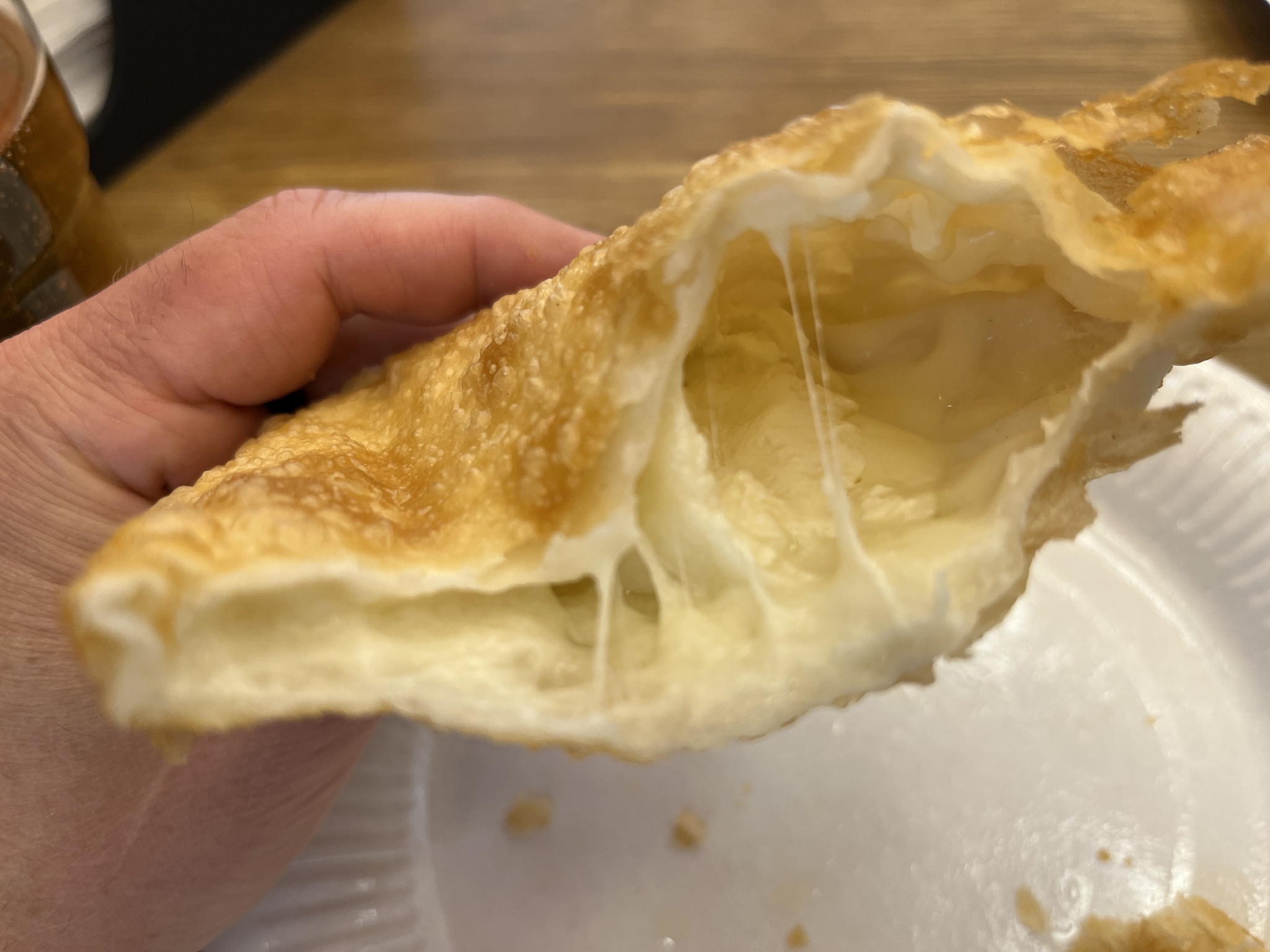 В самом начале лета я наконец добрался до чебуречной «Шурик» на Рогожском рынке. И не пожалел. Не случайно мне эту чебуречную рекомендовали читатели. Там действительно хорошо. Любой чебурек, как мне кажется, удовлетворит все потребности любителя жанра, но я остановлюсь на сырном миксе – чебурек с моцареллой и творожным сыром за 200 рублей.