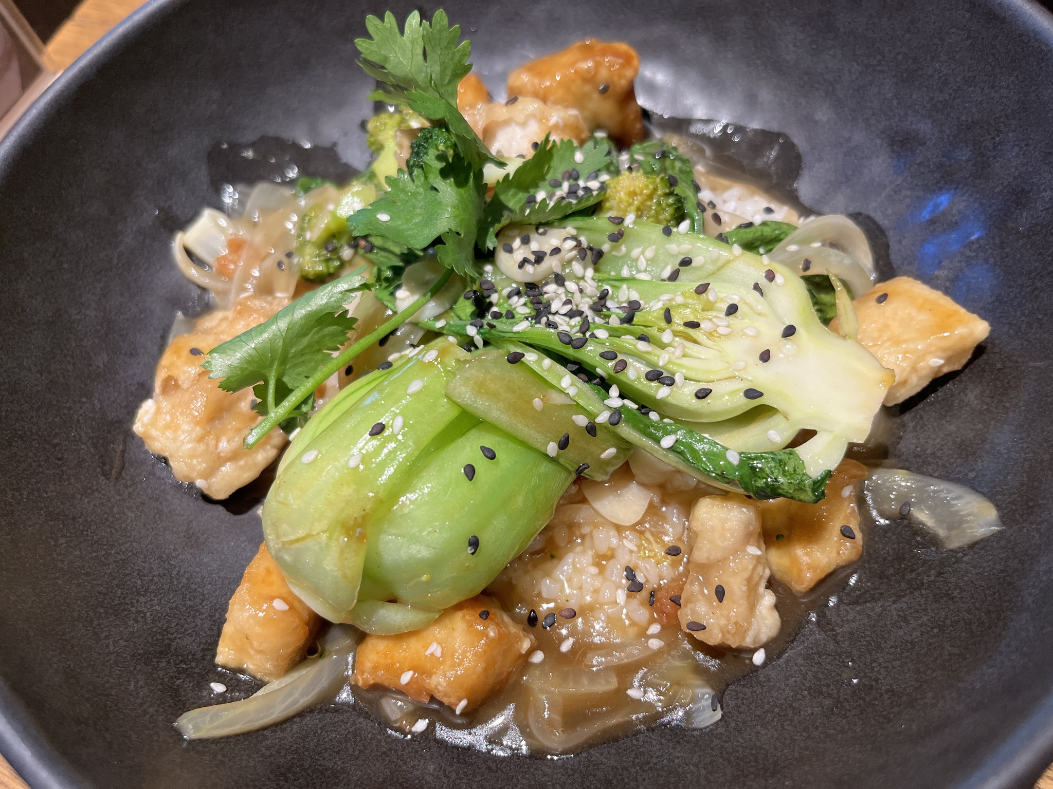 Марлин в соусе терияки на подушке из риса с броколи и бок-чой