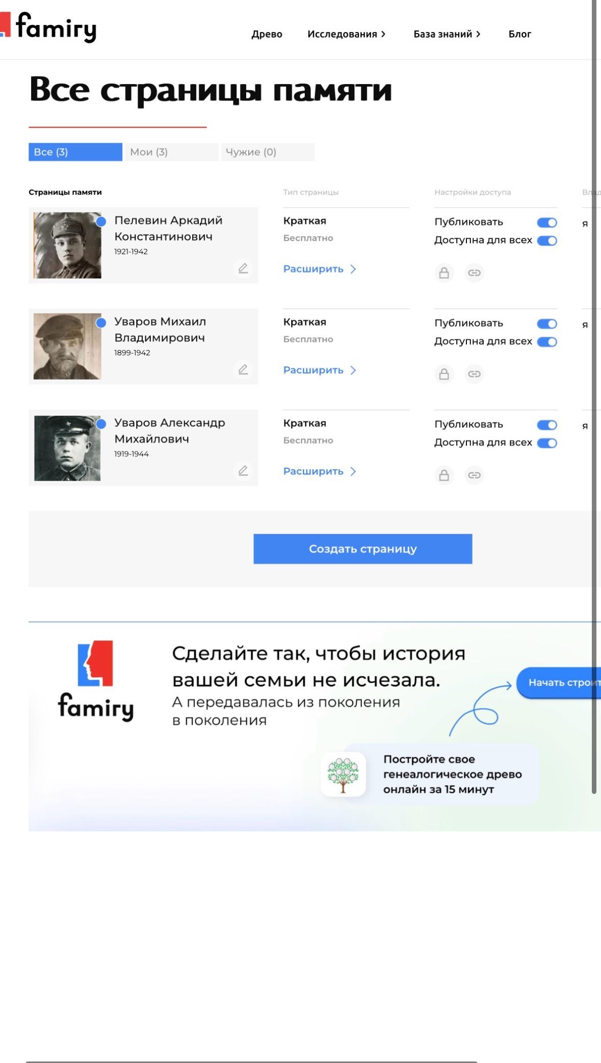 7. Создание виртуального мемориала/онлайн страница памяти с именами погибших