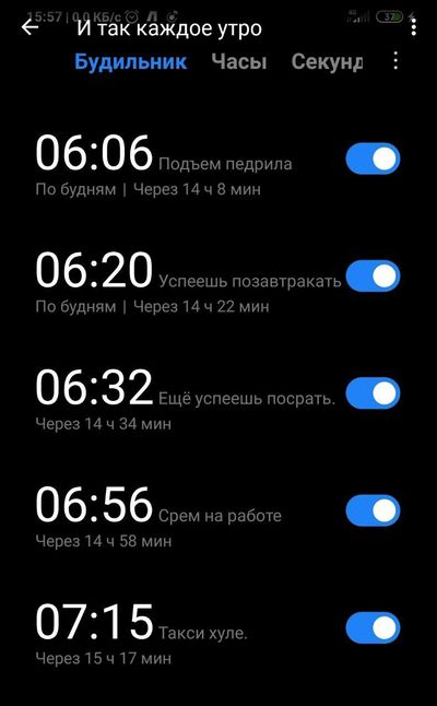 всегда ставлю несколько будильников, потому что бывают случаи что несознательно выключаю и дальше сплю, причем потом этого даже не помню