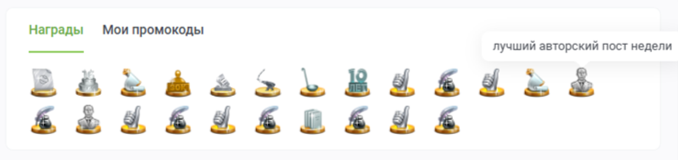 Администрация оценила, что есть активные пользователи и ввела «ачивки». Такие значки виртуальные в качестве поощрения.