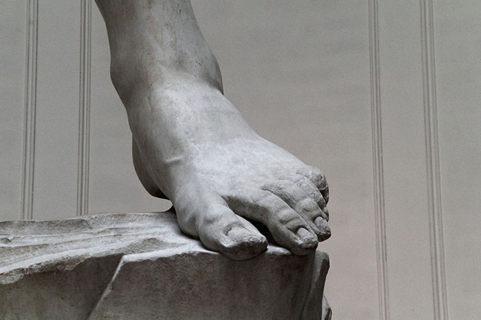 Теперь Давид защищен плексигласом, но даже под такой защитой статуя остается уязвимой перед стихией. Флоренция подвержена сейсмической активности, и даже небольшие толчки могут нанести вред хрупким лодыжкам Давида или, в самом худшем случае, опрокинуть его величественную фигуру.