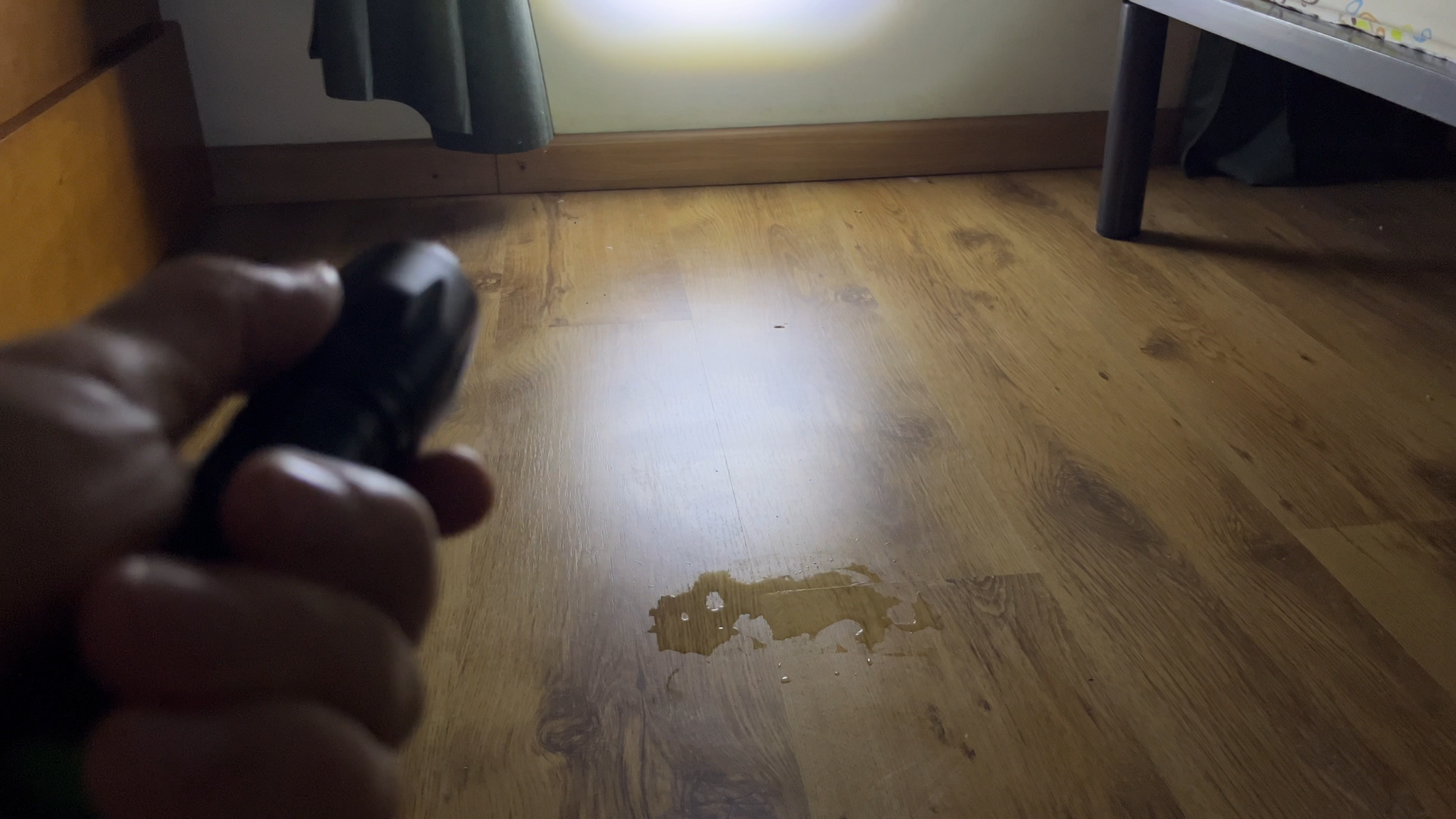 2. Если вы пролили жидкость на пол или на стол, то эту лужу не всегда хорошо видно. Зеркальная поверхность лужи будет лучше выделяться на матовой поверхности пола в том случае, когда вы смотрите на неё против света.