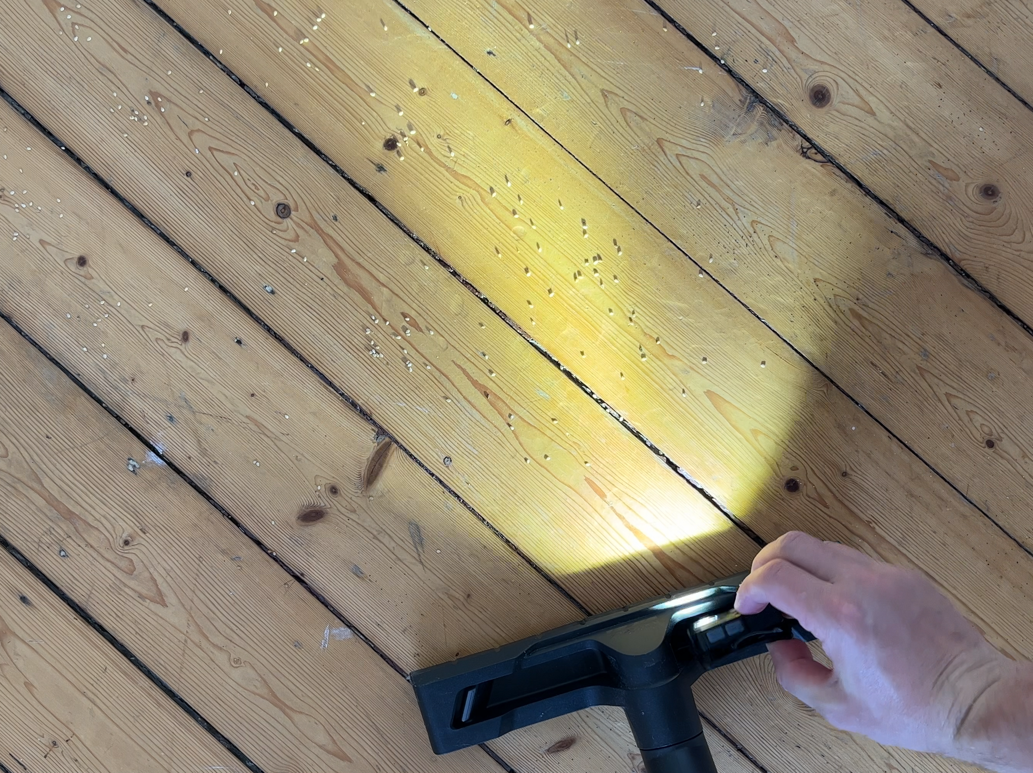 3. Лучше увидеть пыль. Если прикрепить фонарик к пылесосу, то вы сможете с лёгкостью определить, на каких участках пола ещё осталась пыль.