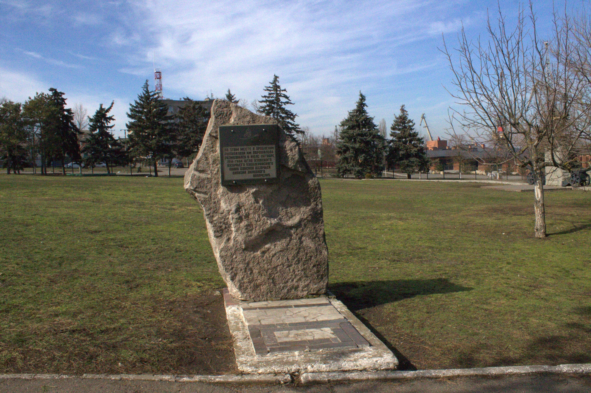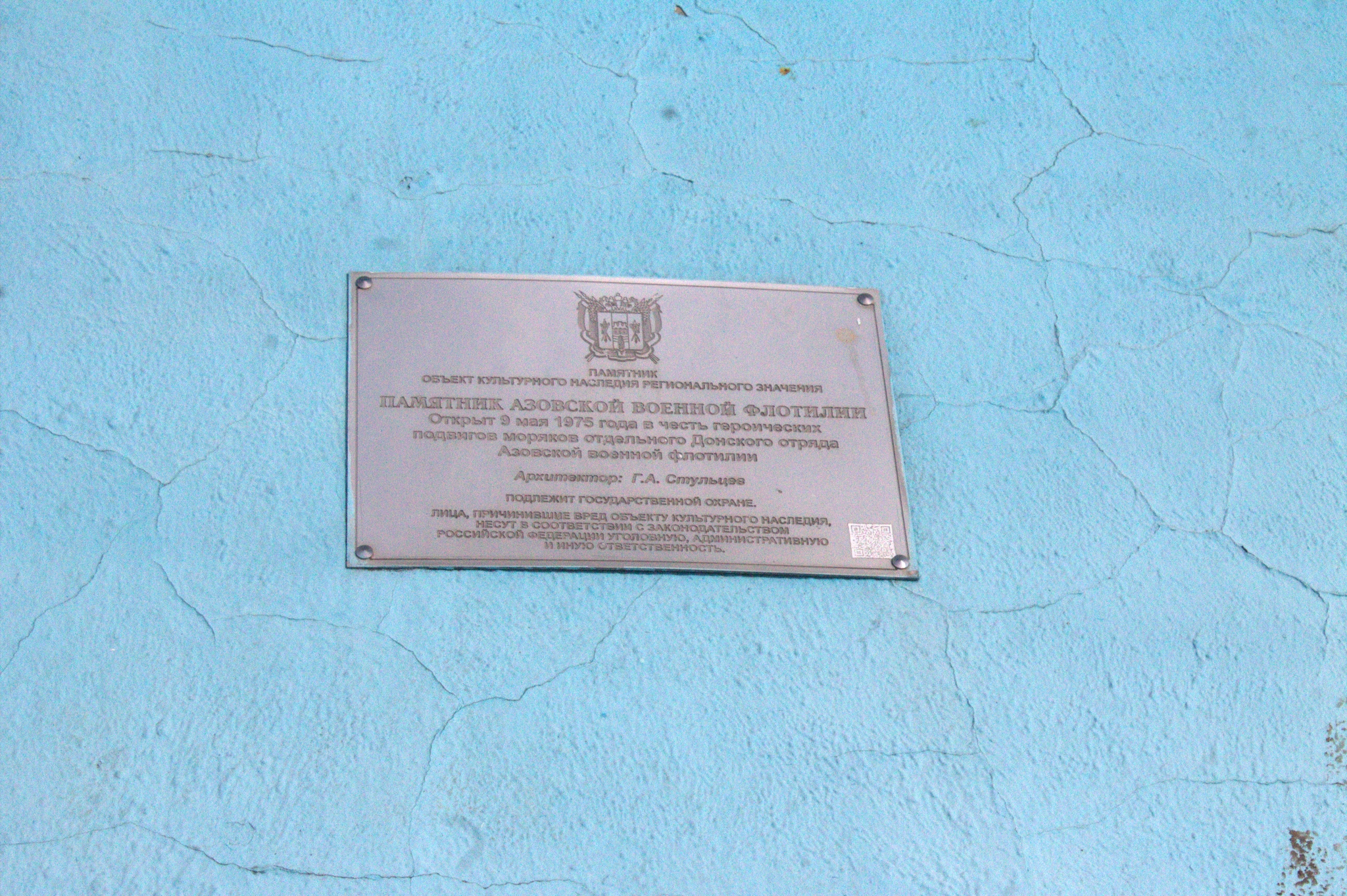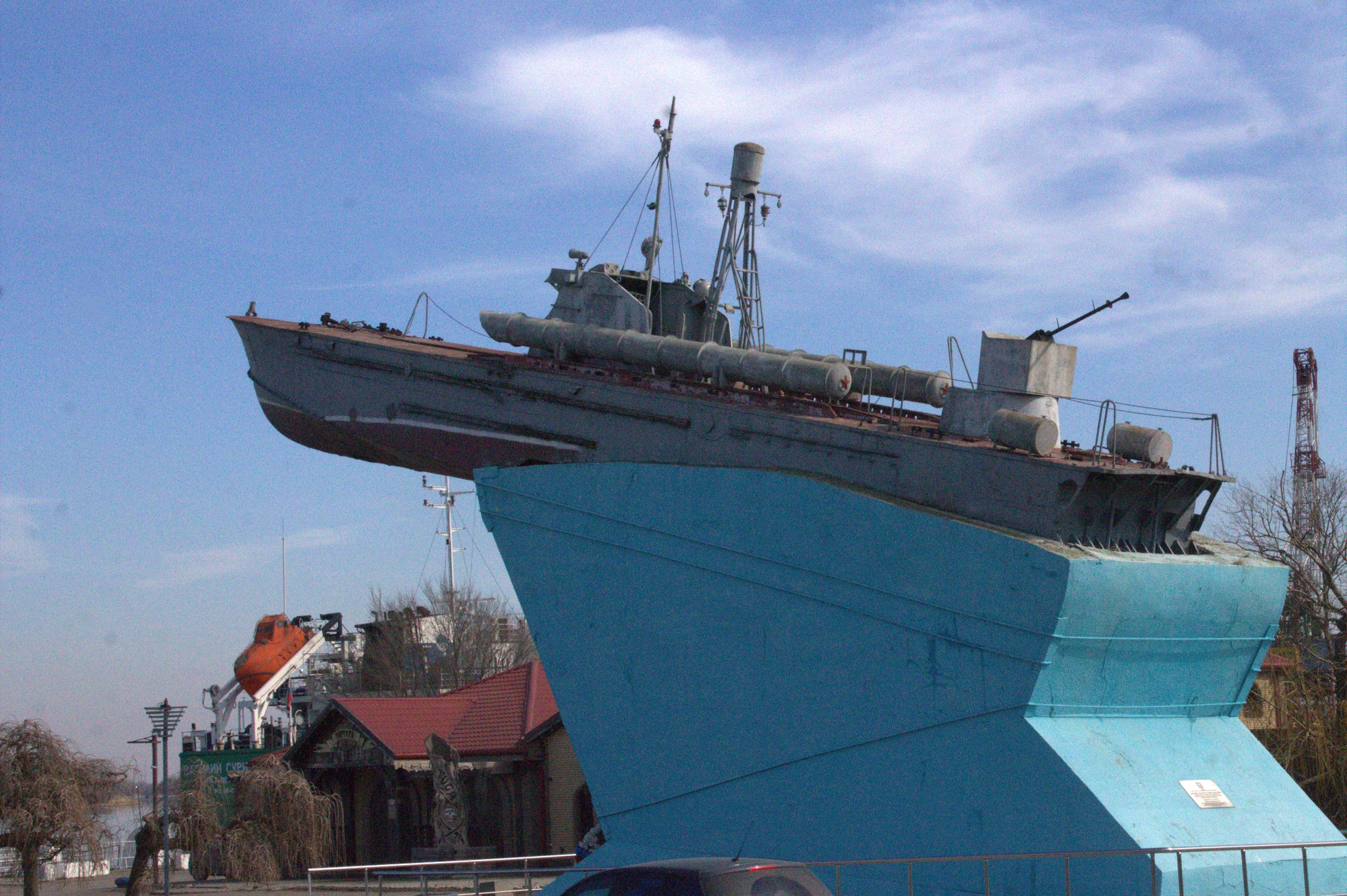 На противоположном выходе из парка можно увидеть памятник Азовской военной флотилии. К сожалению, следят за памятником сильно хуже, и торпедный катер, установленный на пьедестал, нуждается как минимум в покраске.