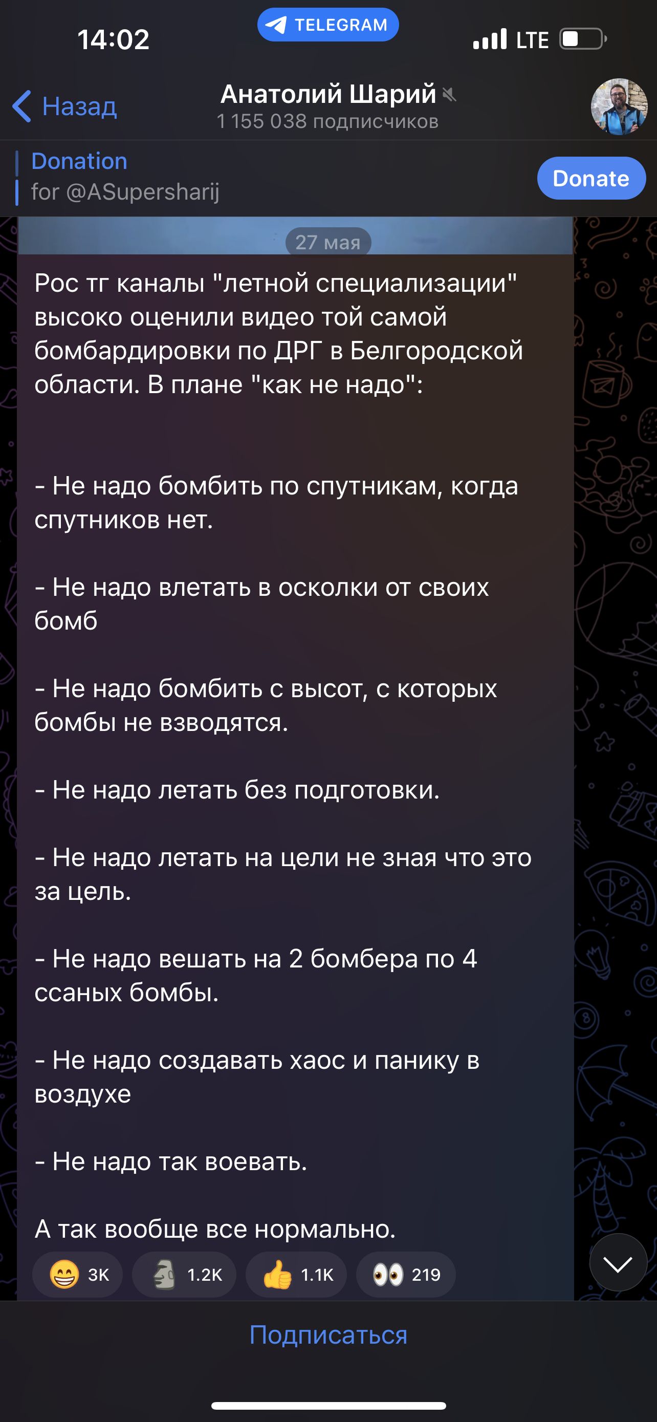 Он отбивался аргументами "я больше помог ВСУ". Просто напоминаю.