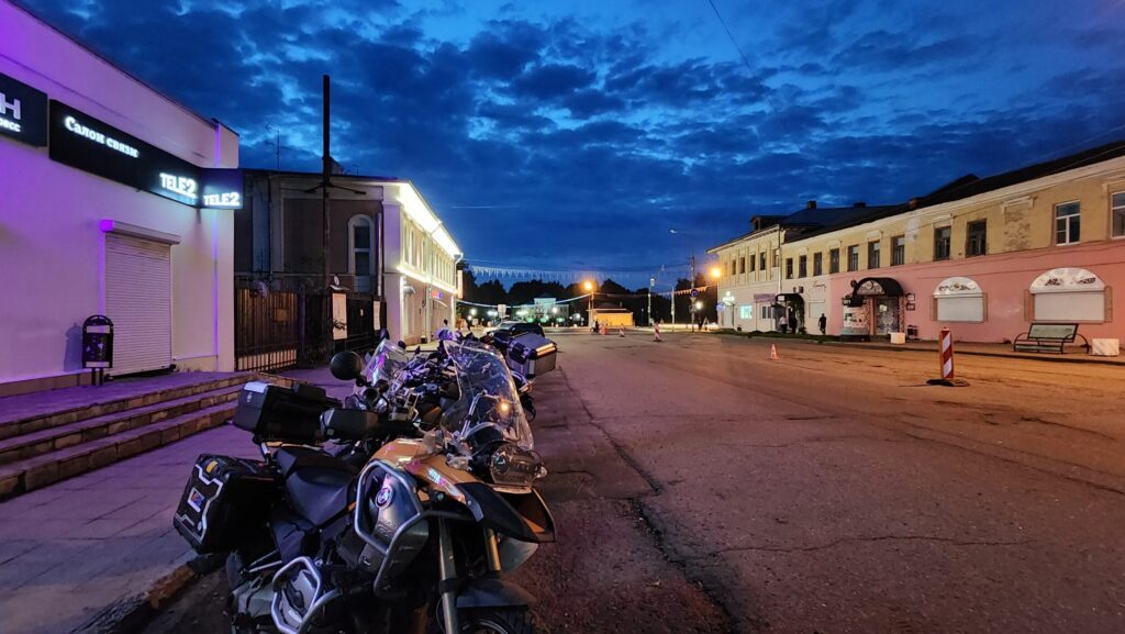 Приезжаем на заправку к основной группе. Пока я заправляюсь и покупаю хотдог (время 19:30, обед, да) ребята решают пробить в номере дырки чтобы его хоть как-то прикрепить. Отвлекаюсь, выдаю мультитул одному человеку, выдаю шестигранник на 22 как молоток другому. Перекидываю защиту из куртки-сетки в основную, а то холодает. Ем хотдог по быстрому, помогаю Ямахе поставить лампочку дальнего. Только всё сделал.. группа едет дальше. Выдохнуть дайте!