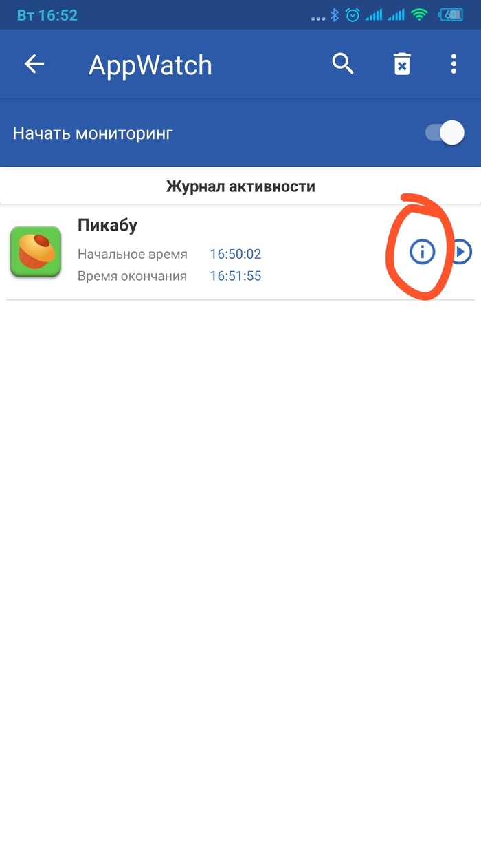 Открыв приложение в первый раз, вы увидите инструкцию, как им пользоваться. Вкратце - включить галочку 'Начать мониторинг', дать разрешение на работу в фоне, а дальше пользоваться телефоном, как обычно.