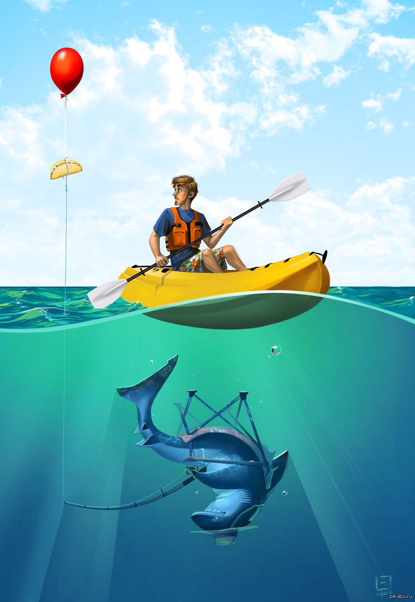 Ловить человека на шарик, а чебурек использовать как грузила... Умно... Умно..