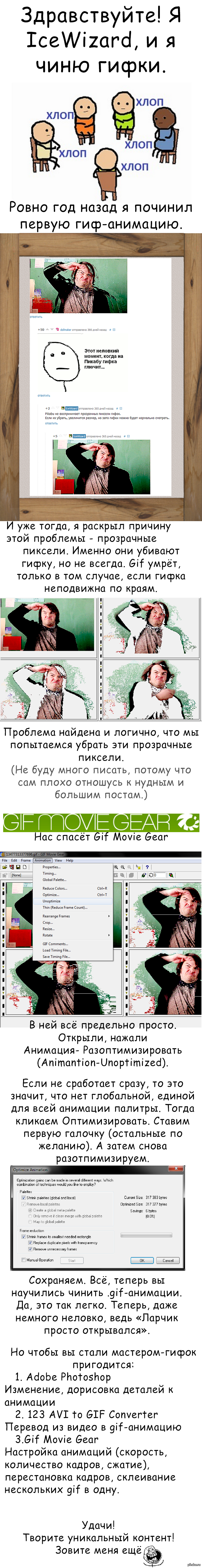2131 IceWizard 12 лет назад Чиним, меняем, создаём гиф анимации Уже очень давно просили рассказать [моё] Icewizard Gifs Сломанные гифки это плохо Гифка Длиннопост