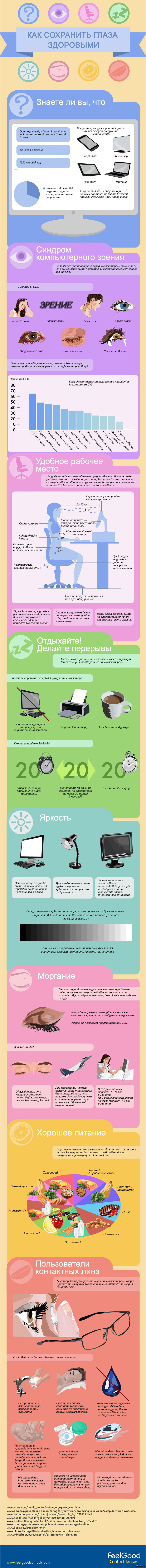 При этом подборка материала не грузит читателя тем, что синдром компьютерного зрения ведёт к прогрессирующей близорукости и поэтому, если расплывчатость не исчезает на следующий день, надо идти к окулисту.