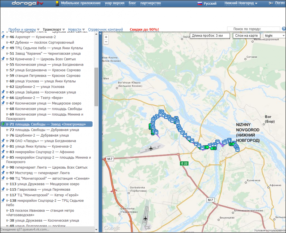 В Санкт-Петербурге тоже есть, но частота обновления меток не очень высокая... и лагает часто (пропадают метки). Но, тем не менее, удобно и функционально.