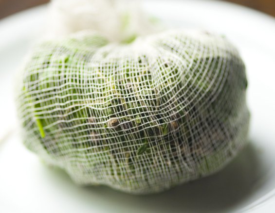 Для варки бульона есть "букет гарни" связка трав или мешочек с травами и специями. А что именно хочет автор продается в виде ситечка для букета гарни, наподобие заварочного, но больше.