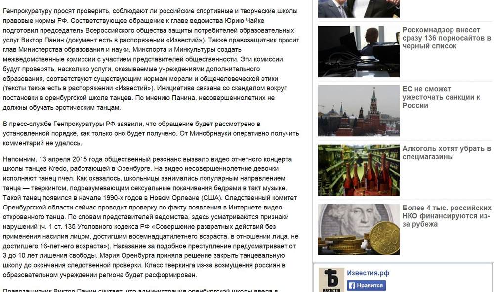 Я не вижу к какому комменту ты это написал? Это дворец культуры, в описание видео было, что это детский театр, даже если это просто театр, ни какой разницы. танцовщицам не 18 лет, дальше что? пока, что твои, что мои доводы основаны на выводах СМИ, твой источник околокрелмя первый раз вижу. Вестифм говорят о детях все утро, а я писал о детях еще вчера. Я допускаю, что СМИ лишь бы попиздеть, но тут спорный момент на лицо. Не надо проявлять чудеса замониторной аналитики и писать о педоистериках неизвестных тебе людях, ты этим оскорбляешь только себя. У нас разные мнения, для меня жопотряс на такой сцене таких девок даже в диапазоне 16-20 это мерзость. ДК это не сцена ночного клуба, где под пивко я бы с радостью это посмотрел(там с возрастом проблем нет)