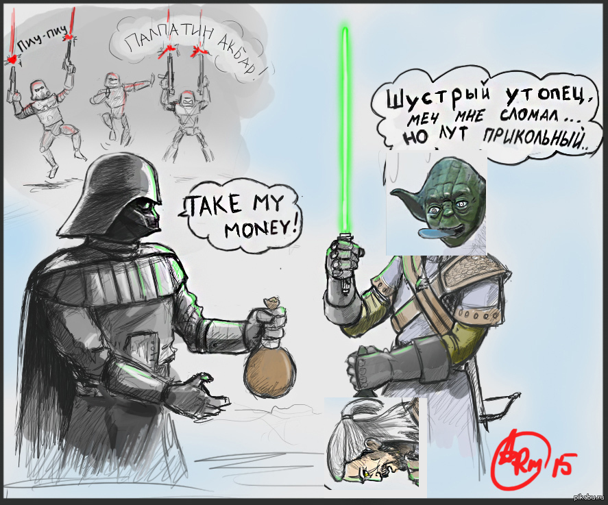 однако у того же Гривуса рефлексы превосходят джедайские за счет манипуляций над мозгом, что было и с ведьмаками, плюс ко всему со времен старой республики джедаи охилели, контроль силы ниже, способностей меньше, но я все ещё на стороне адептов силы