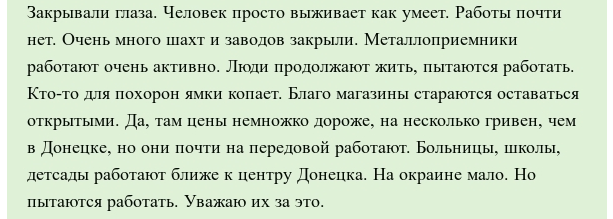 Мда. А ведь нормально жили. И работа какая ни какая была, и не голодали, и снаряды над головами не рвались.