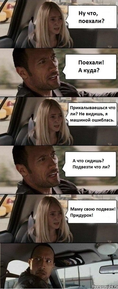 - Маму свою подвези! – выскакивает из машины и напоследок говорит возмущенно - Придурок! - хлопает дверью.