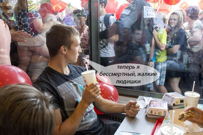 люди одичалые, в очереди более 500 человек, шел после работы домой как раз мимо нового заведения, люди идут навстречу с огромными пакетами с едой, как будто первый раз в жизни увидели фаст-фуд и нужно срочно купить всем родственникам и даже отправить в Казахстан.