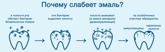 Если воздействие кислот на эмаль продолжается, то разрушается уже органический каркас. Образуется полость, которая не может восстановиться сама, а продолжает расти. Заболевание переходит в следующую стадию – поверхностный кариес (кариес эмали), далее – в средний и, наконец, в глубокий.